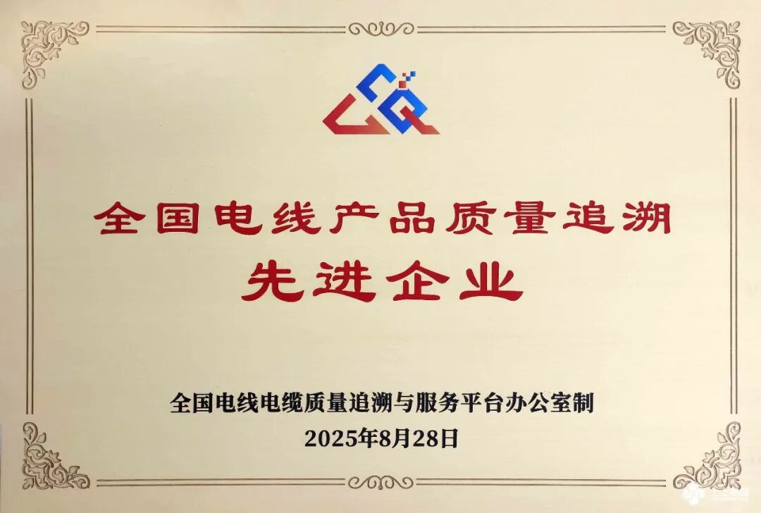 東(dōng)強公司榮獲首批“全國(guó)電(di←>àn)線産品質量追溯先進企業(yè)”稱号